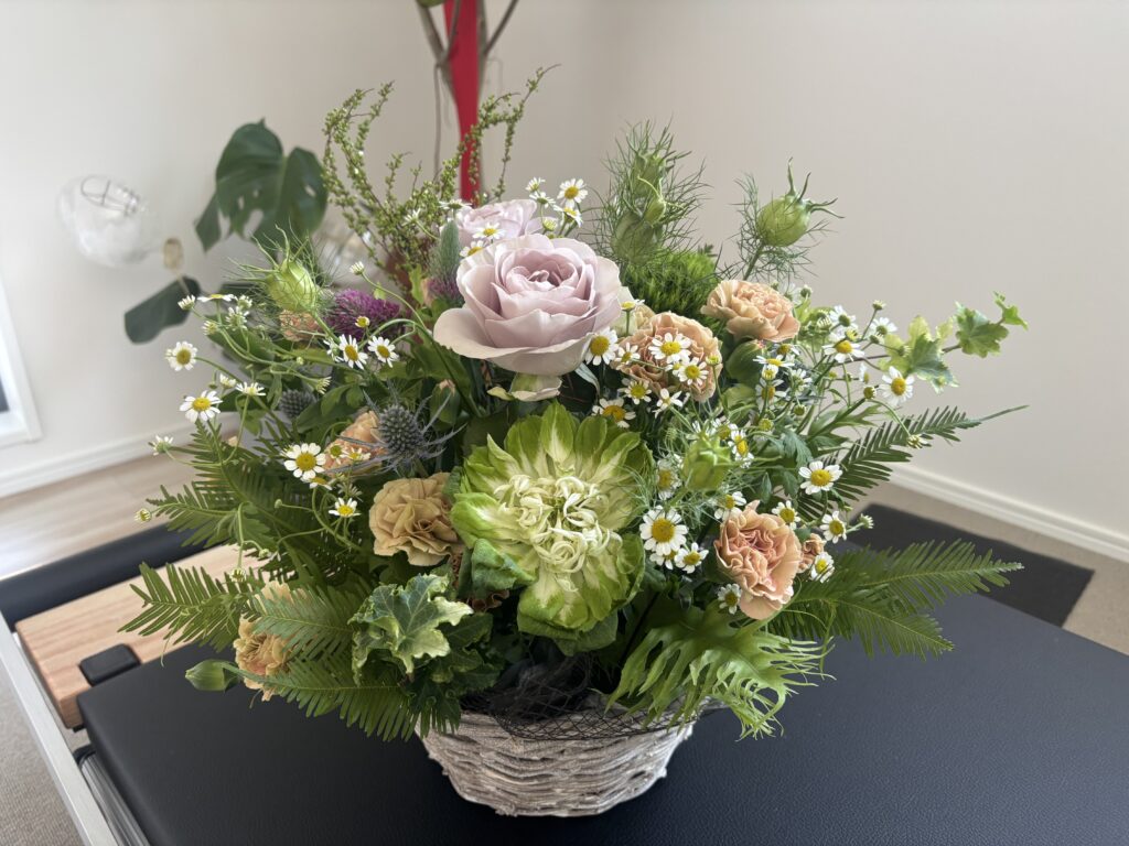 いつもレッスンに来てくださるお客様から綺麗なお花をいただきました🌷色合いが素敵です❤️