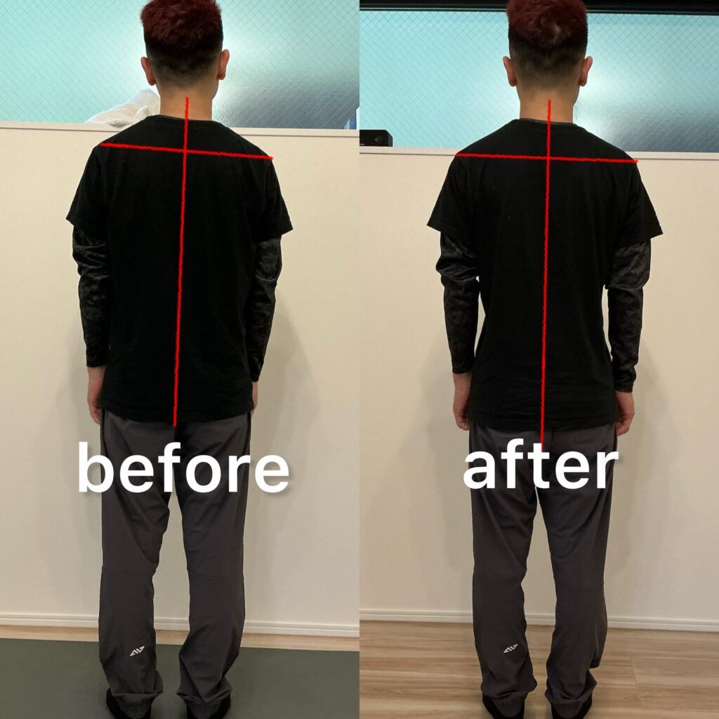 左右の傾きも整い、肩の高さがシンメトリーに近づいたのが
